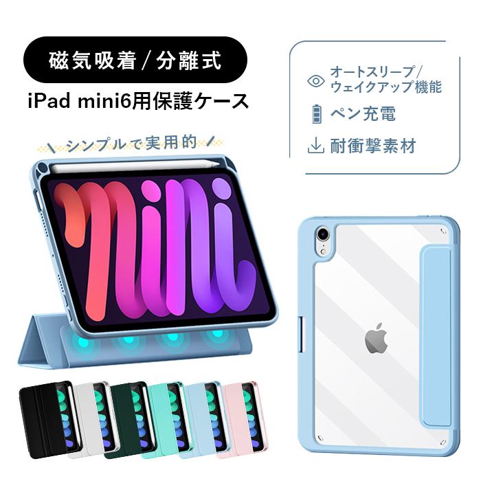 iPad mini 6(第6世代)64GB 保護フィルム+マグネットケース付き iPad ケース カバー 2021 mini 6 第6世代 背面クリア クリアケース